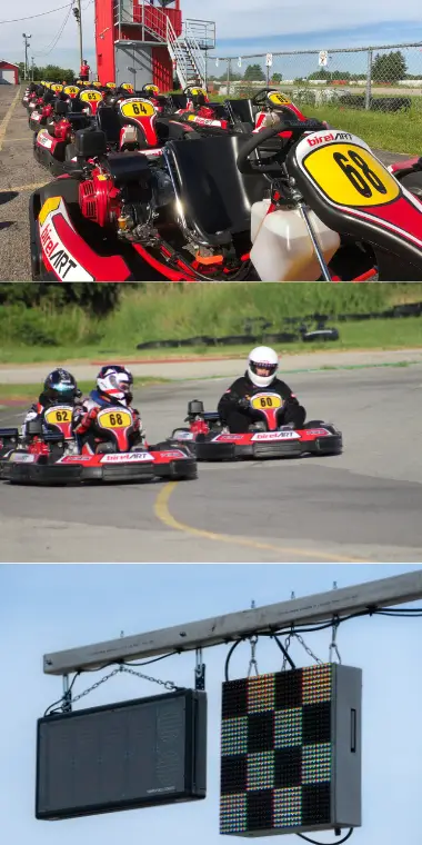 Canadian Mini Indy’s fleet of karts is race-ready and waiting for you. We feature European-style Birel-ART karts that reach top speeds of 80 km/h. With adjustable seats and pedals, our karts can accommodate all sizes. We offer Junior Karts for ages 7 and up, along with Adult Karts, with races organized by age and weight groups.